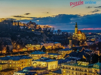 Puzzle Noc, Austria, Salzburg, Domy