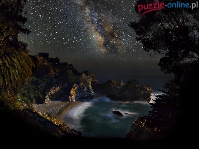 Noc, Droga mleczna, Wybrzeże, Zatoka, Niebo
