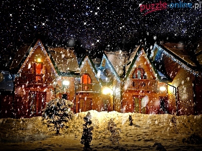 Puzzle Noc, Domy, Zima, Święta