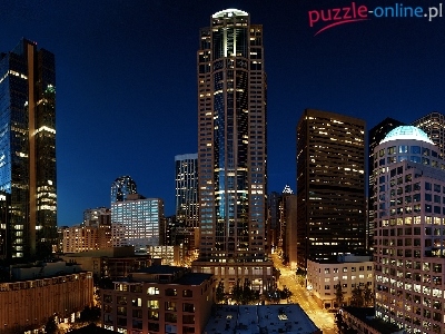 Miasto, Drapacze Chmur, Seattle, Stany Zjednoczone, Nocą