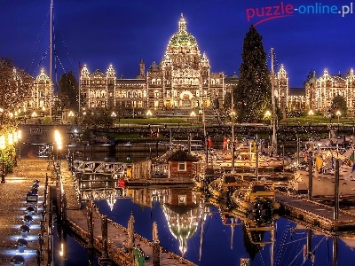 Parlament, Nocą, Victoria, Marina, Łodzie, Gmach, Jachty, Miasto