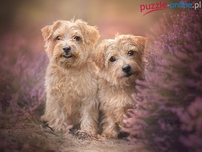 Puzzle Norfolk terrier, Dwa, Psy, Wrzos
