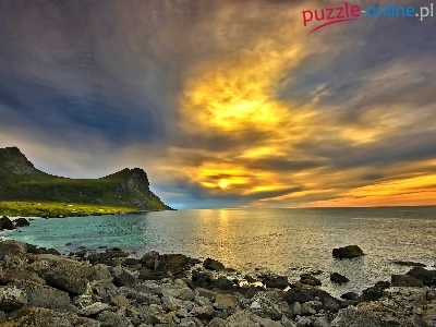 Puzzle Norwegia, Morze, Zachód Słońca, Wybrzeże
