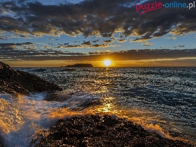Nowa Południowa Walia, Morze, Wschód Słońca, Ocean Spokojny, Australia, Przylądek Fingal Head, Skały