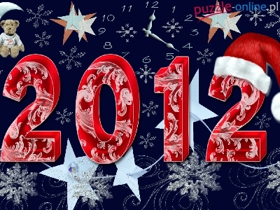 Puzzle Nowy, Zegar, Grafika, Rok