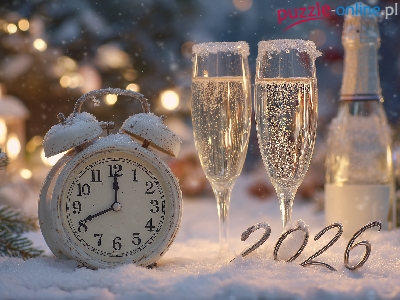 Nowy Rok, Zegar, 2026, Grafika AI, Szampan, Kieliszki, Zima