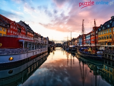 Nyhavn, Kamieniczki, Zachód, Słońca, Statki