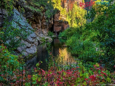 Arizona, Stany Zjednoczone, Sedona, Rzeka, Drzewa, Kamienie, West Fork Oak Creek, Skały