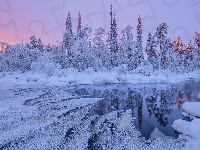Ośnieżone, Rzeka, Zima, Oblodzona, Zaspy, Drzewa