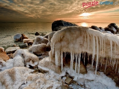 Oblodzone, Zima, Morze, Plaża, Kamienie