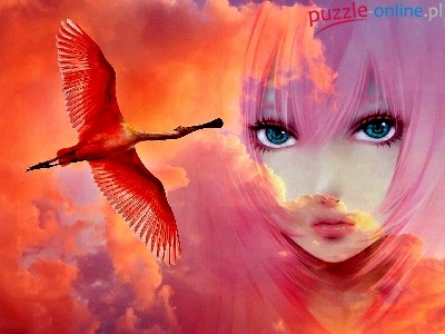Puzzle Obłoki, Dziewczyna, Ptak, Fantasy
