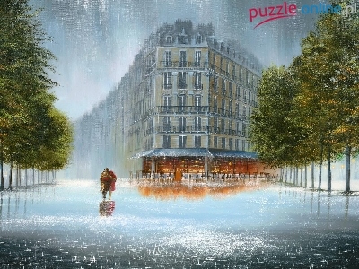 Ulica, Obraz, Art, Miłość, Deszcz, Para, Olej