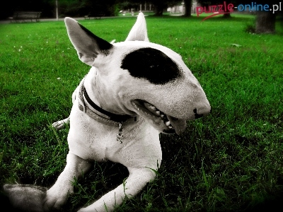 Puzzle Obroża, Bulterier, Łata, Trawa