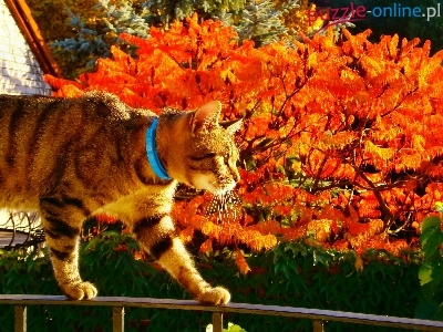 Obroża, Drzewo, Kotek, Niebieska, Jesienne