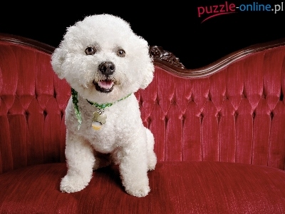 Puzzle Obroża, Biały, Pudel, Sofa