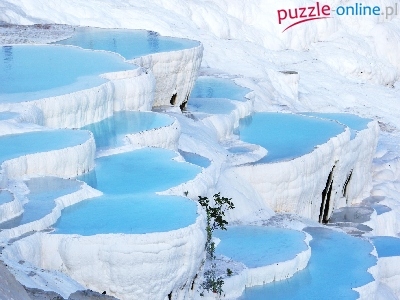 Baseny, Termalnej, Obżeżach, Górskie, Stalaktyty, Turcja, i, Na, Pamukkale, Wody, Nacieki