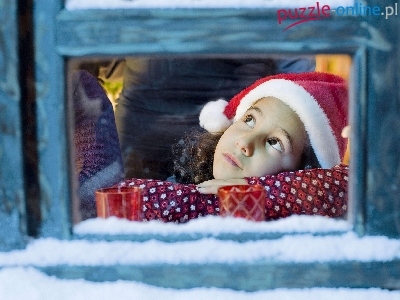 Puzzle Oczekiwanie, Dziewczynka, Okno, Śnieg