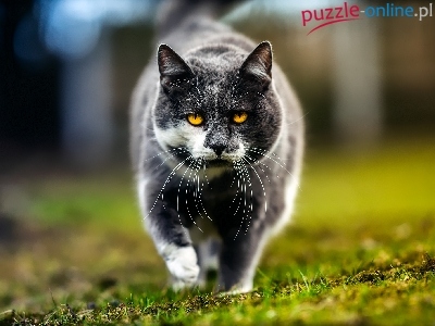Puzzle Oczy, Kot, Miodowe, Trawa