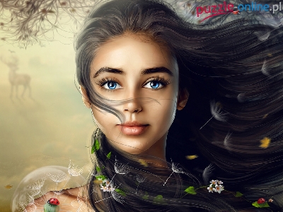 Kobieta, Oczy, Niebieskie, Paintography, Dmuchawce