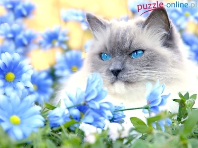 Puzzle Oczy, Kot, Niebieskie, Margerytki
