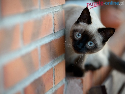 Oczy, Mur, Kot, Niebieskie, Ceglany