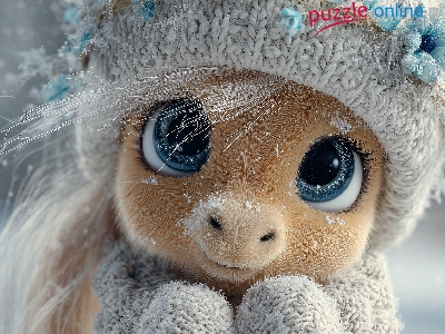 Oczy, Grafika AI, Duże, Maskotka, Kucyk, Szalik, Zabawka, Czapka