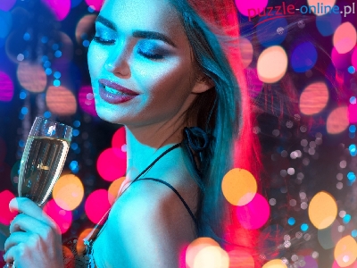 Dziewczyna, Oczy, Zamknięte, Szampan, Kieliszek