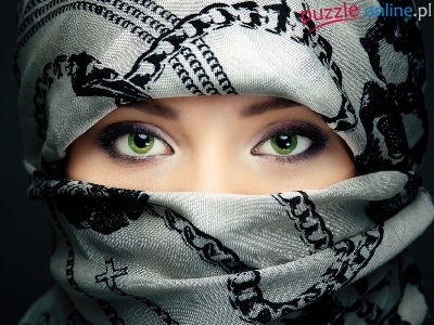 Puzzle Oczy, Kobieta, Zielone, Chusta
