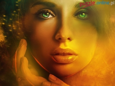 Puzzle Oczy, Kobieta, Zielone, Dłoń