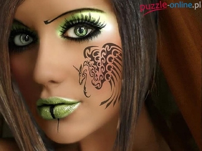 Oczy, Makijaż, Kobieta, Zielone, Tatuaż