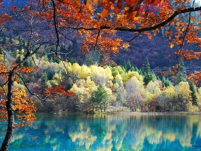 Drzewa, Odbicie, Jesień