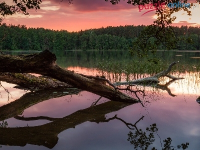 Pojezierze Mrągowskie, Drzewa, Las, Powalone, Polska, Jezioro Czos, Odbicie