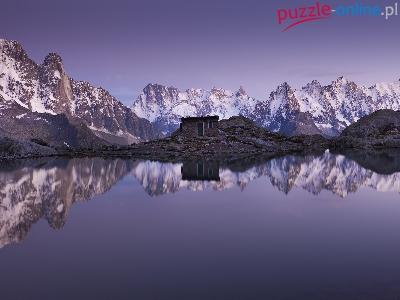 Puzzle Odbicie, Góry, Jezioro, Chata