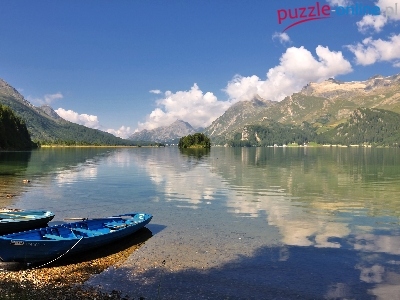 Maria, Odbicie, Łódki, Góry, Wysepka, Segl, Jezioro, Obłoki