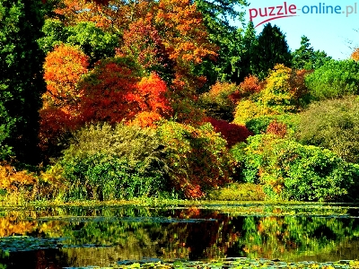 Puzzle Odbicie, Jesień, Staw, Drzew