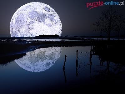 Odbicie, Fantasy, Księżyc, Woda, Noc