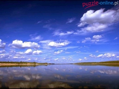 Puzzle Odbicie, Rzeka, Wybrzeża, Chmury