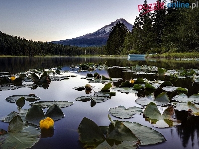 Łódka, Liście, Las, Jezioro, Grążele, Góry