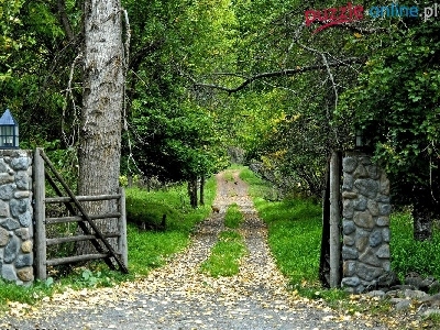Puzzle Ogród, Drzewa, Ścieżka, Brama