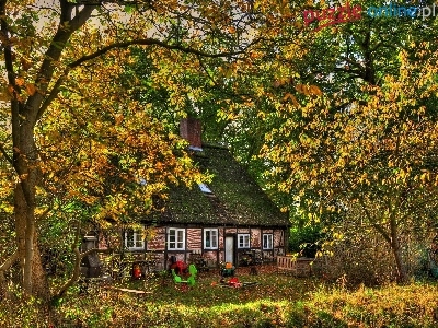 Puzzle Ogród, Jesień, Dom, Drzewa