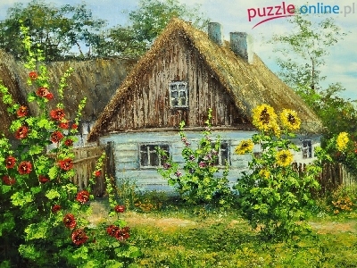 Puzzle Ogród, Wiejski, Dom, Kwiaty