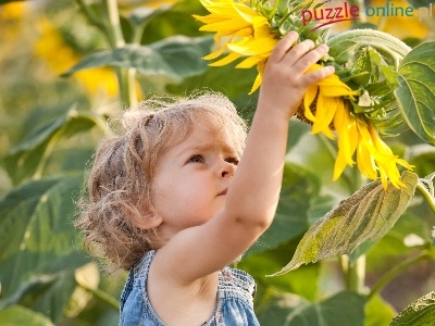 Puzzle Ogród, Mała, Dziewczynka, Słoneczniki