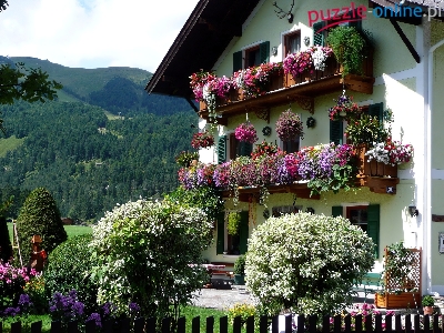 Puzzle Ogród, Dom, Góry, Austria