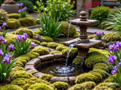 Puzzle Ogród, Fontanna, Irysy
