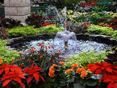 Puzzle Kwiaty, Ogród, Fontanna