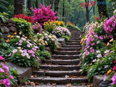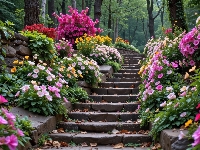 Puzzle Kwiaty, Schody, Kolorowe, Ogród