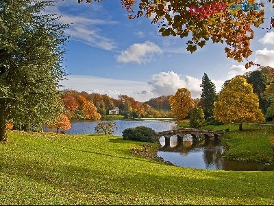Ogród, Anglia, Jeziorko, Mostek, Stourhead