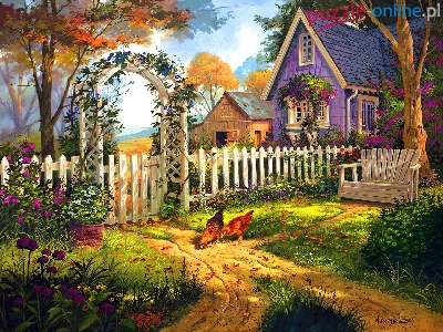 Puzzle Ogród, Dom, Podwórko, Ławka