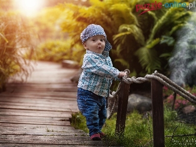 Puzzle Ogrodzenie, Chłopczyk, Czapka, Pomost