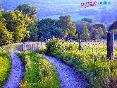 Puzzle Ogrodzenie, Polna, Droga, Krajobraz